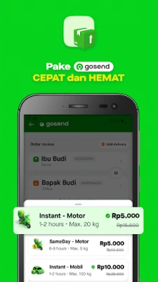 বন্ধুদের সাথে জরুরি দেখা করতে হবে বা অফিসে দ্রুত পৌঁছাতে চান? Gojek-এর GoRide পরিষেবা আপনাকে মুহূর্তে পৌঁছে দেবে আপনার গন্তব্যে। আবার, যদি আরামদায়ক এবং ঝামেলামুক্ত ভ্রমণ আপনার প্রথম পছন্দ হয়, তাহলে GoCar আপনার জন্য আদর্শ। পছন্দের খাবার বাড়িতে বসে উপভোগ করতে চান? GoFood-এর মাধ্যমে অসংখ্য রেস্টুরেন্টের বিশাল মেনু থেকে আপনার প্রিয় পদটি অর্ডার করুন এবং প্রিয়জনদের সাথে উপভোগ করুন। একা বা একসাথে—GoFood আপনার প্রতিটি খাদ্য আকাঙ্ক্ষা পূরণে সচেষ্ট।